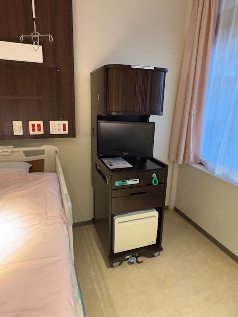令和8年4月1日より病室に設置している床頭台(テレビ・冷蔵庫)およびランドリーの利用方法がこれまでのテレビカード方式から日額方式(440円/日)に変更となります。